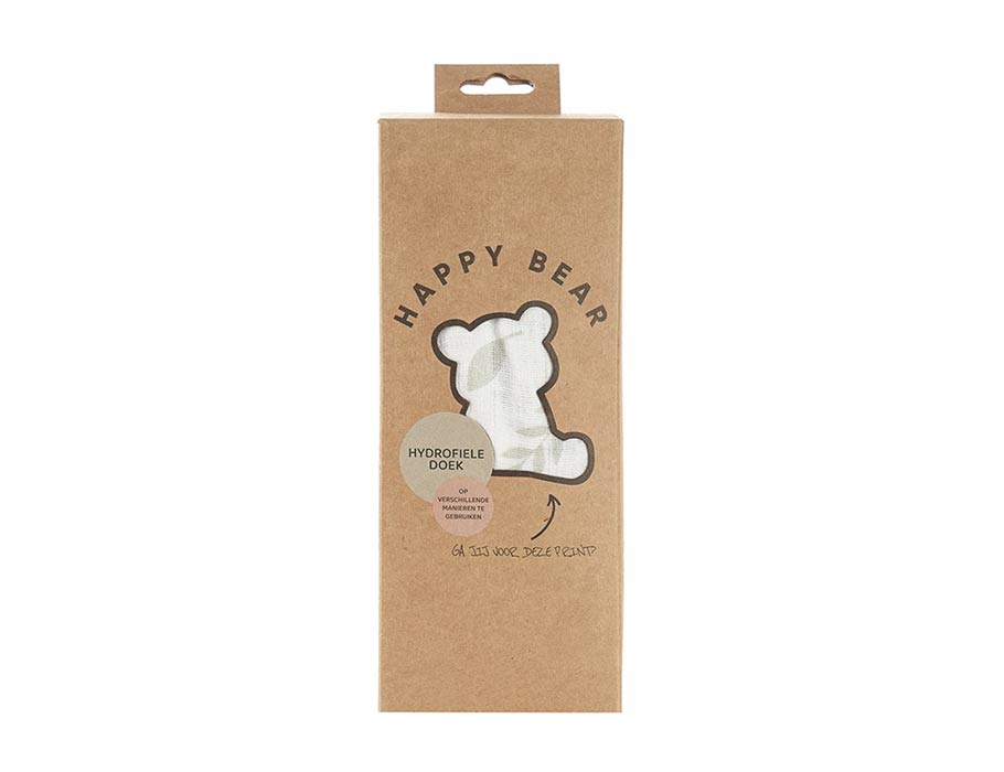 Katoenen hydrofiele doek van HappyBear van 120 x 120 cm. Deze lichtgroene doek met natuurmotief is op verschillende manieren te gebruiken: als dekentje, verschoonmatje, handdoek en natuurlijk als inbakerdoek. Ze zijn gemaakt van dunne ademende mousseline katoenen stof.