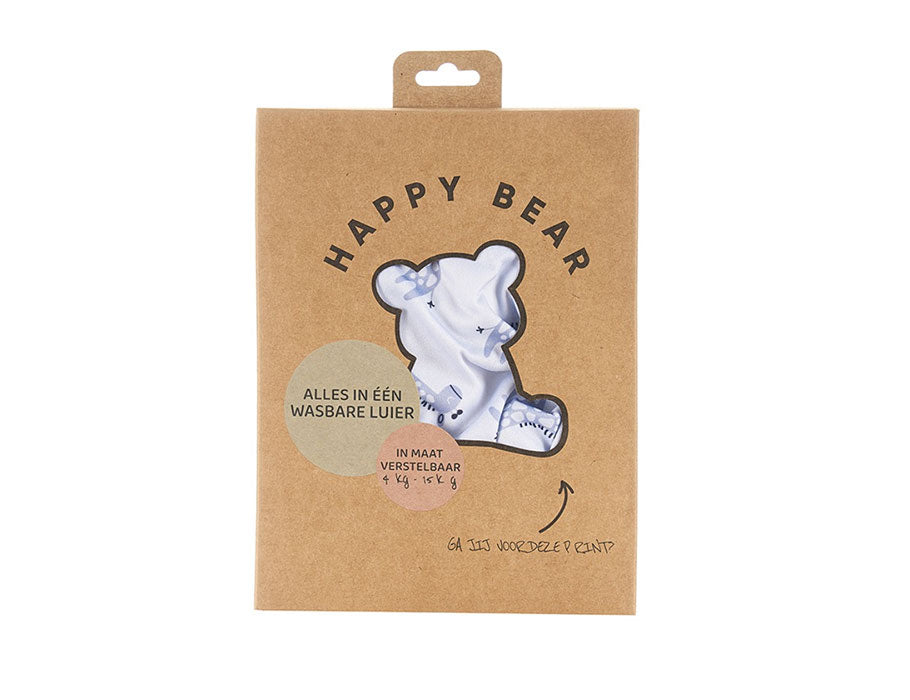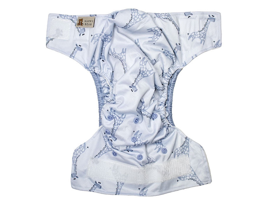 HappyBear Wasbare Luier - All-in-One - Blue Giraffe